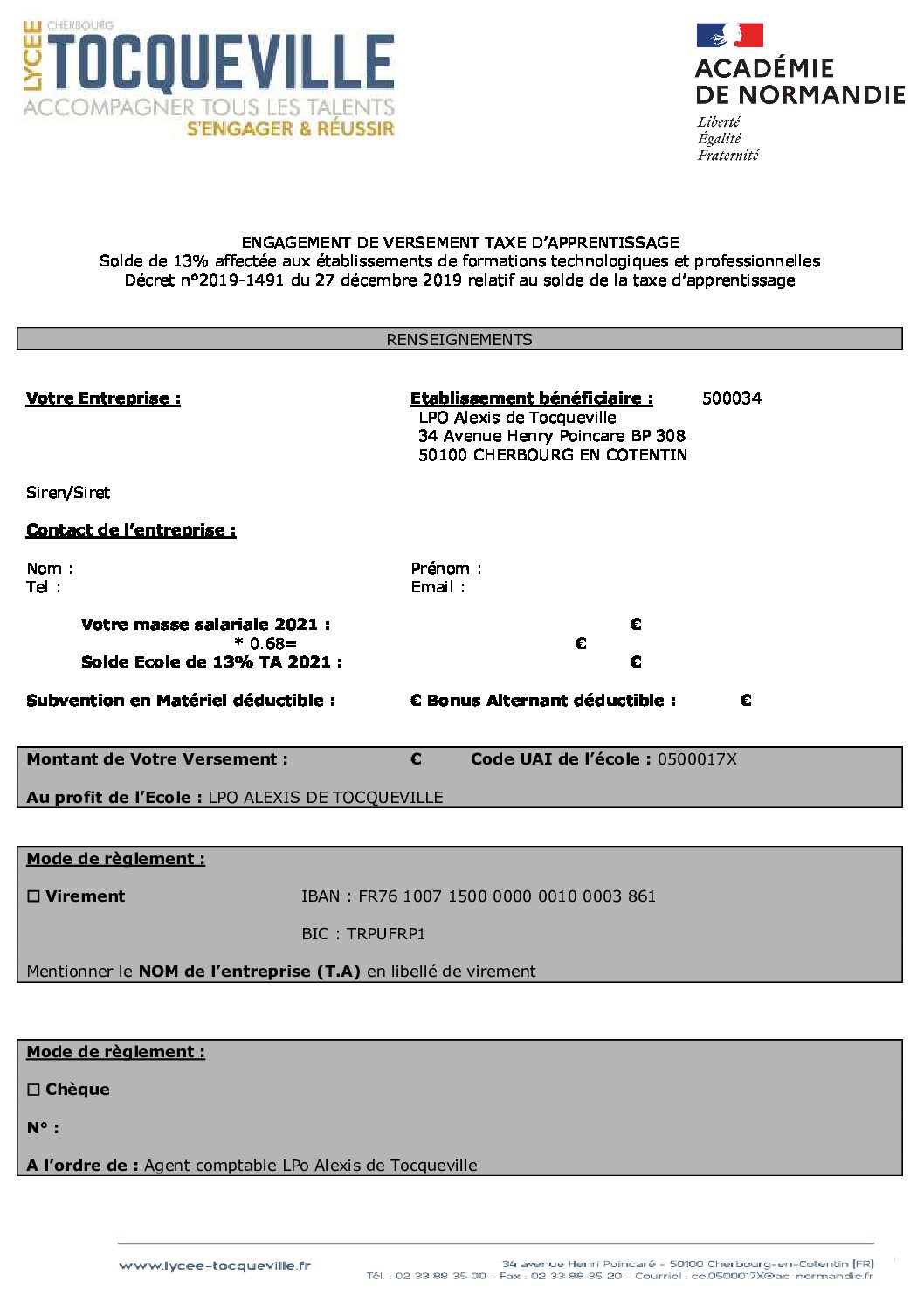 Bordereau de versement