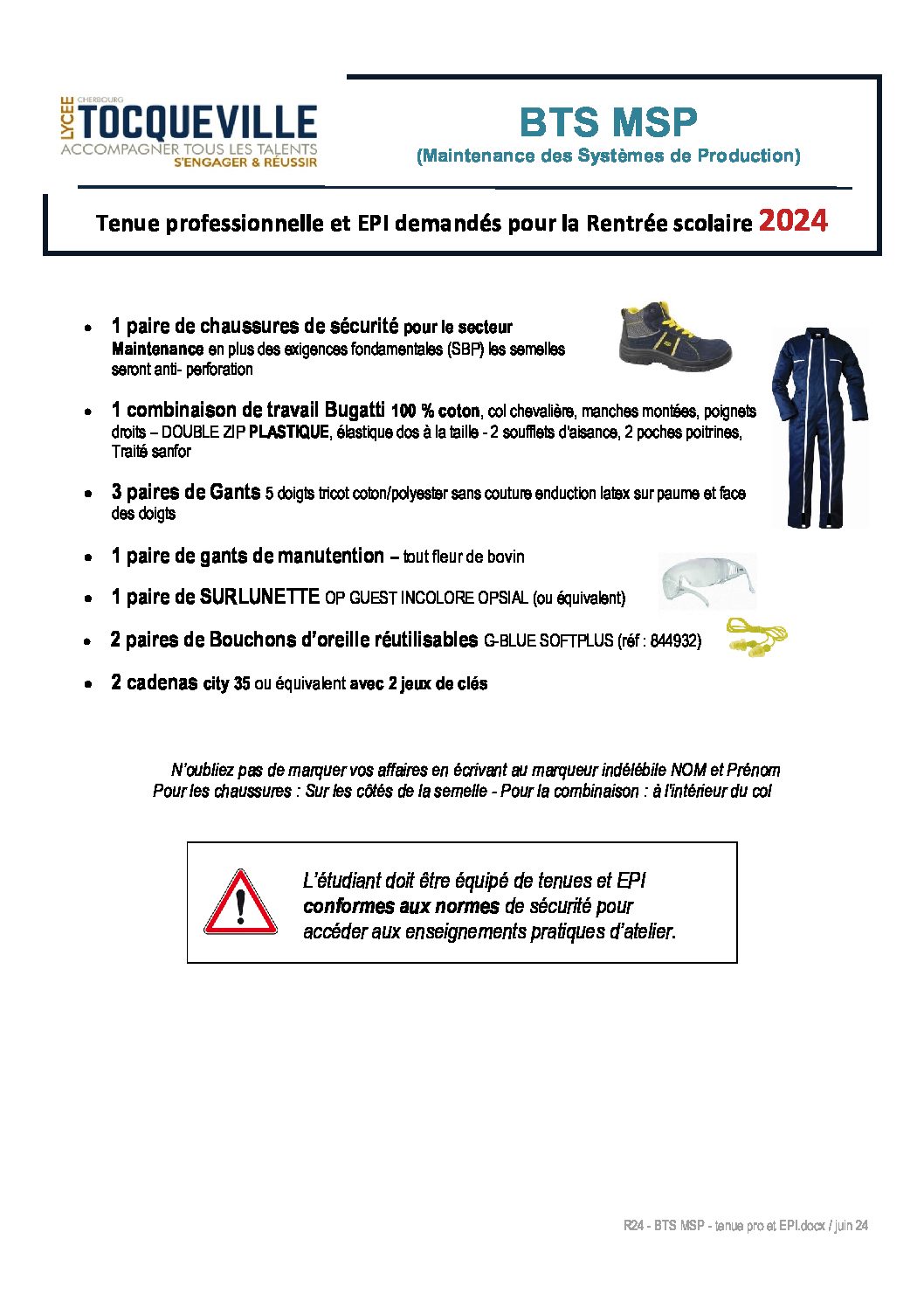 BTS MSP – tenue pro et EPI