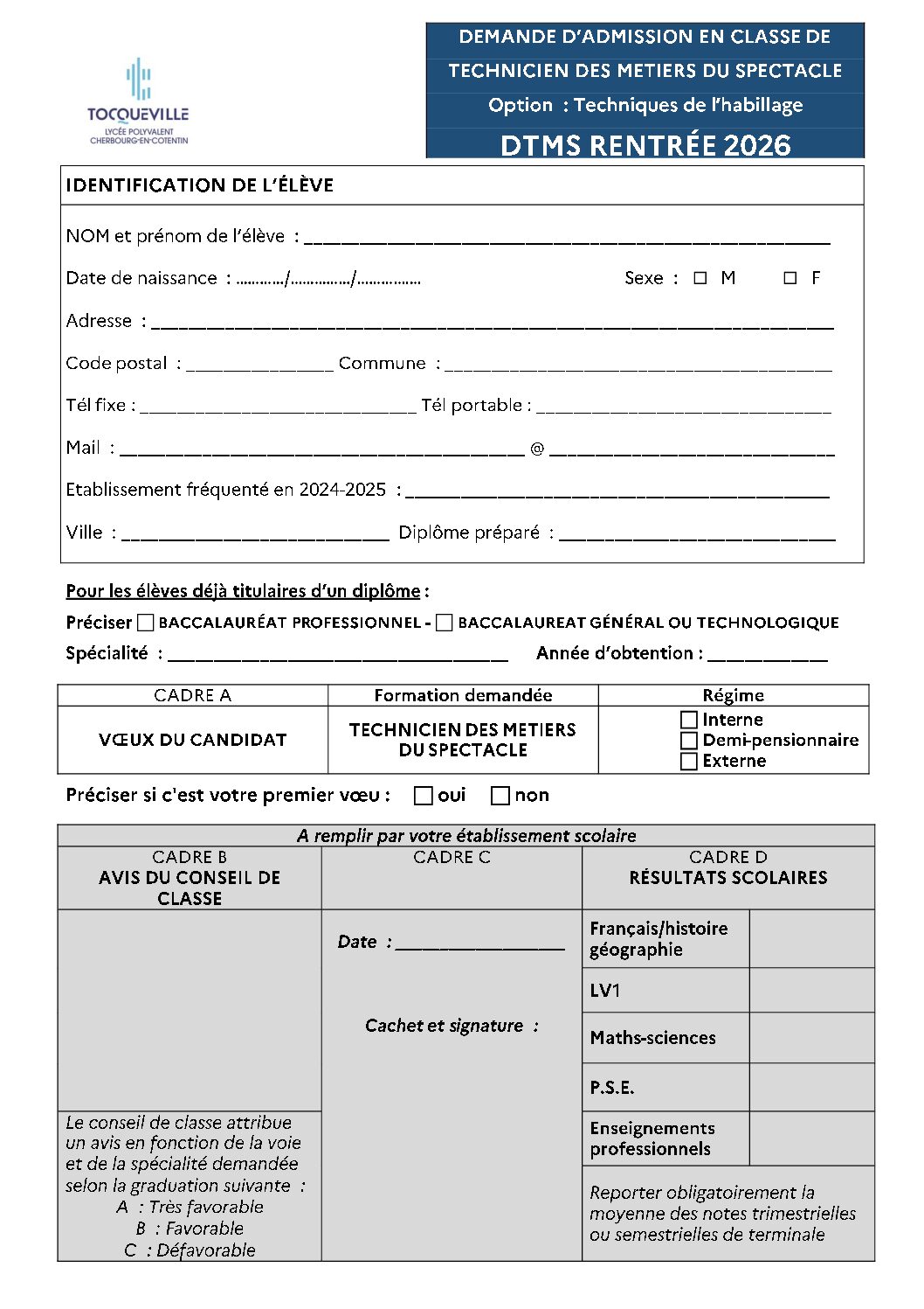Candidature en ligne DTMS – 2026-2027