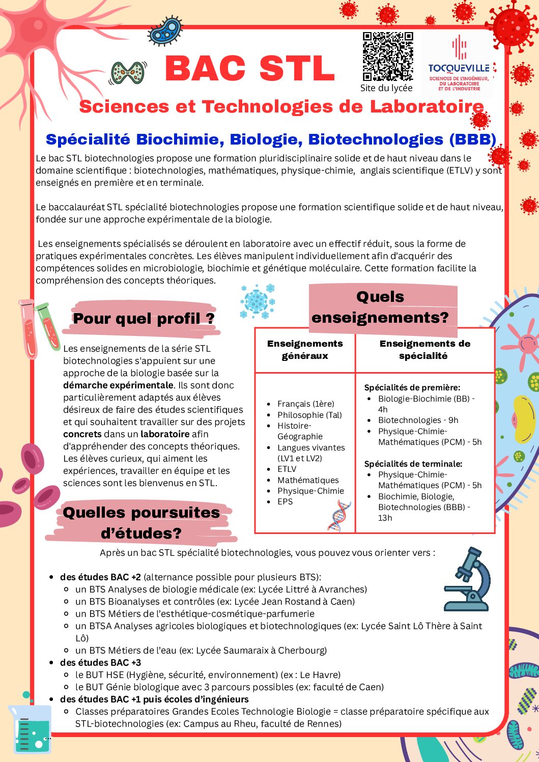 Bac STL (Sciences et Technologies de Laboratoire) | Biotechnologies & SPCL