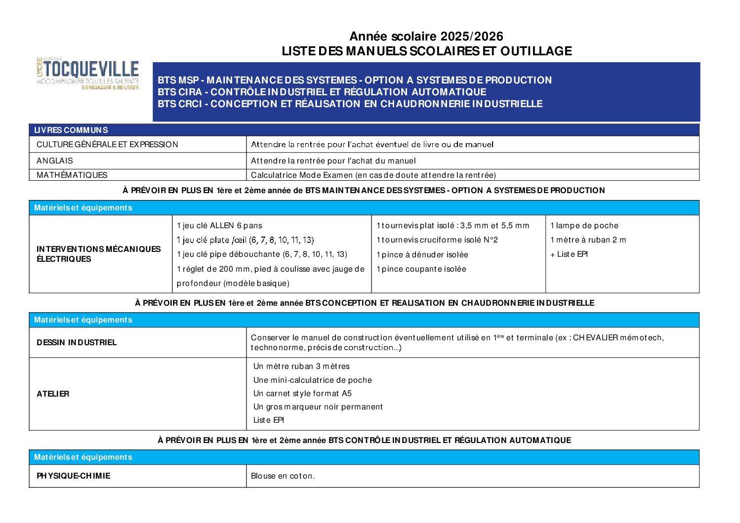 LISTE DES MANUELS SCOLAIRES – RENTREE 2025-2026 – SECTIONS PRO