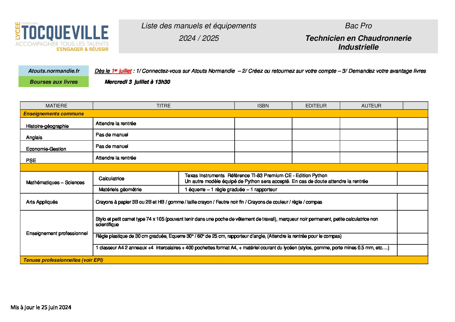 Listes des manuels / fournitures scolaires/ EPI 2025/2026 ( Section Professionnelle)