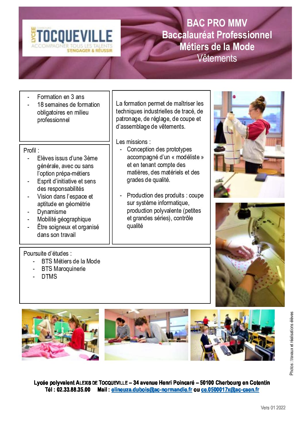 Plaquette Bac Pro Métiers de la Mode Vêtements Download attachment file: Skip back to main navigation
