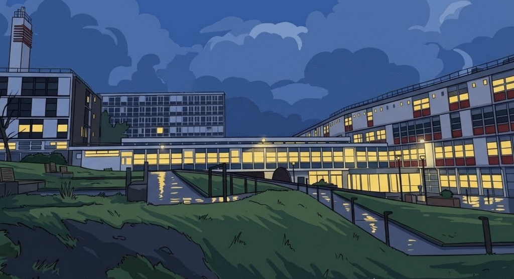 Les derniers bâtiments, aujourd’hui appelés « côté industrie » furent terminés en 1965. Les sections industrielles masculines s’y installèrent.