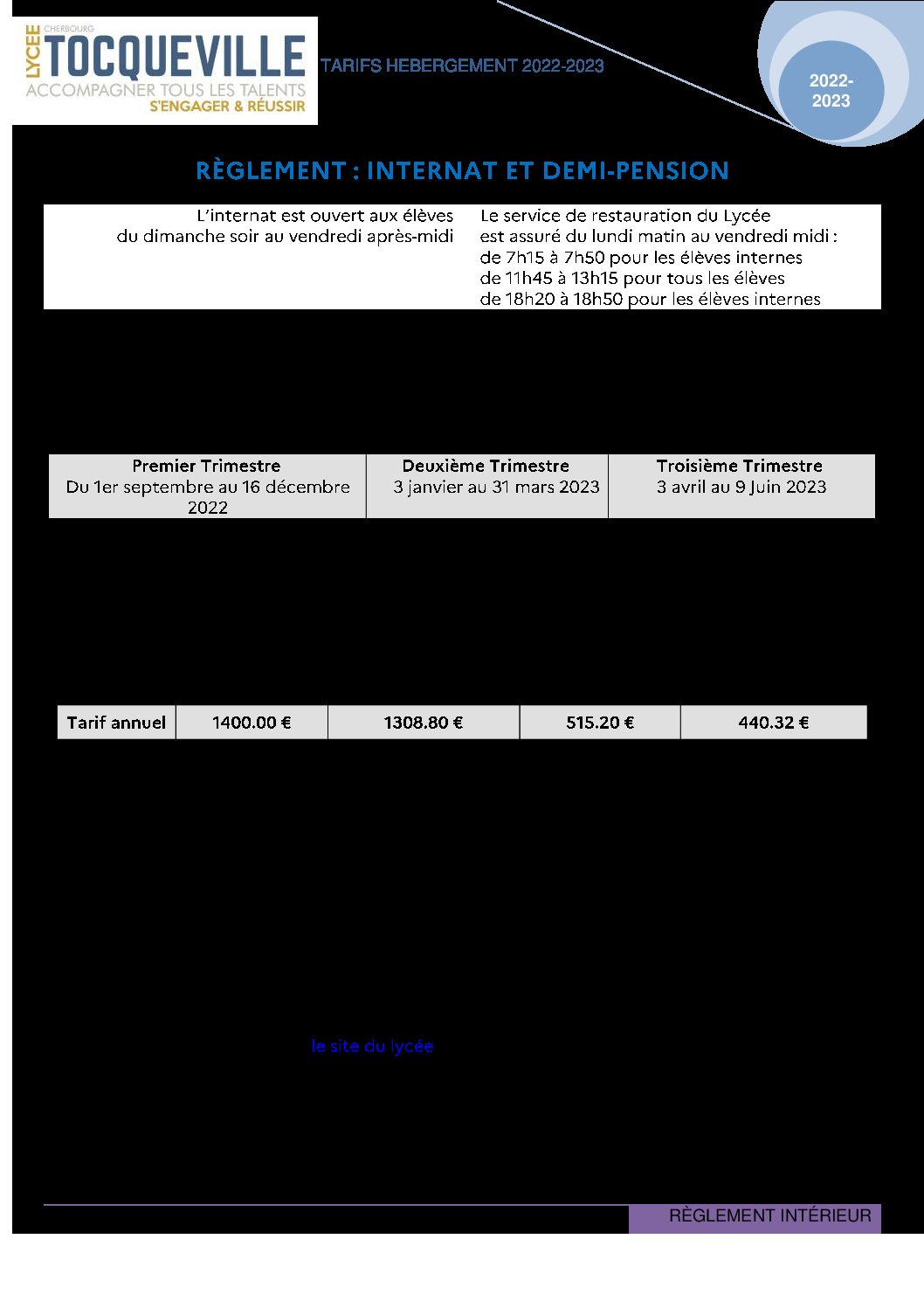 reglement internat 2022